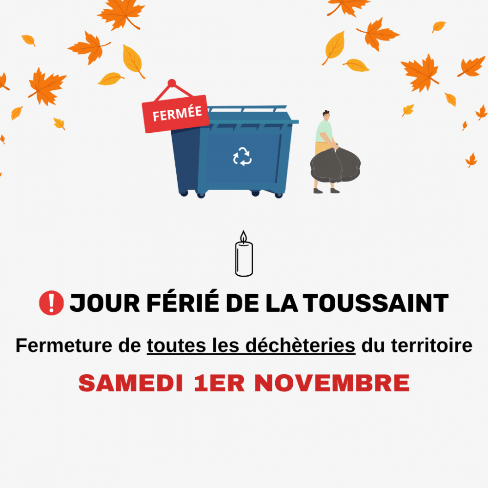 En raison du jour férié de la Toussaint, les déchèteries du Pays de Sarrebourg seront fermées samedi 1er novembre.